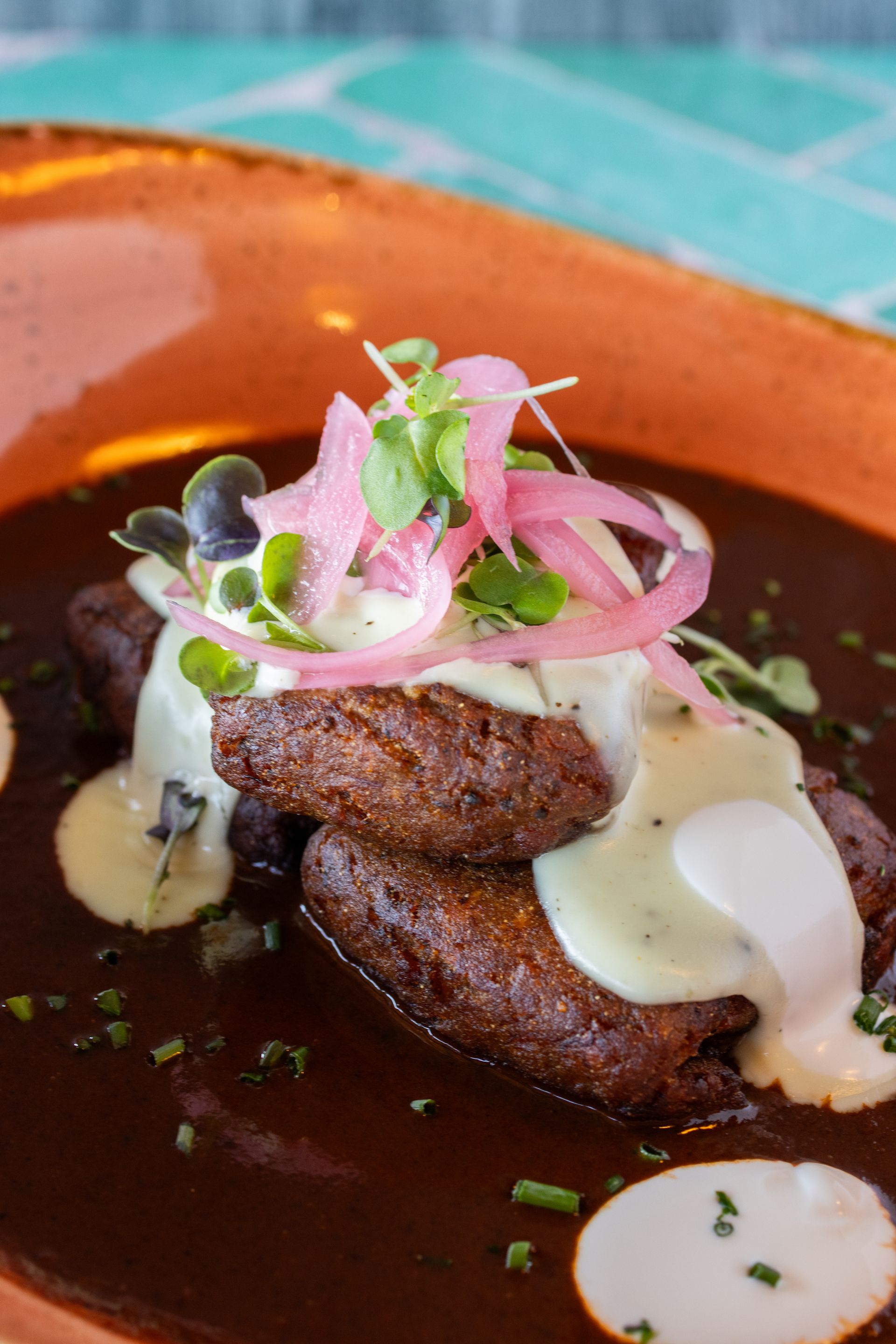 black bean puree, smoked gouda & mole coloradito