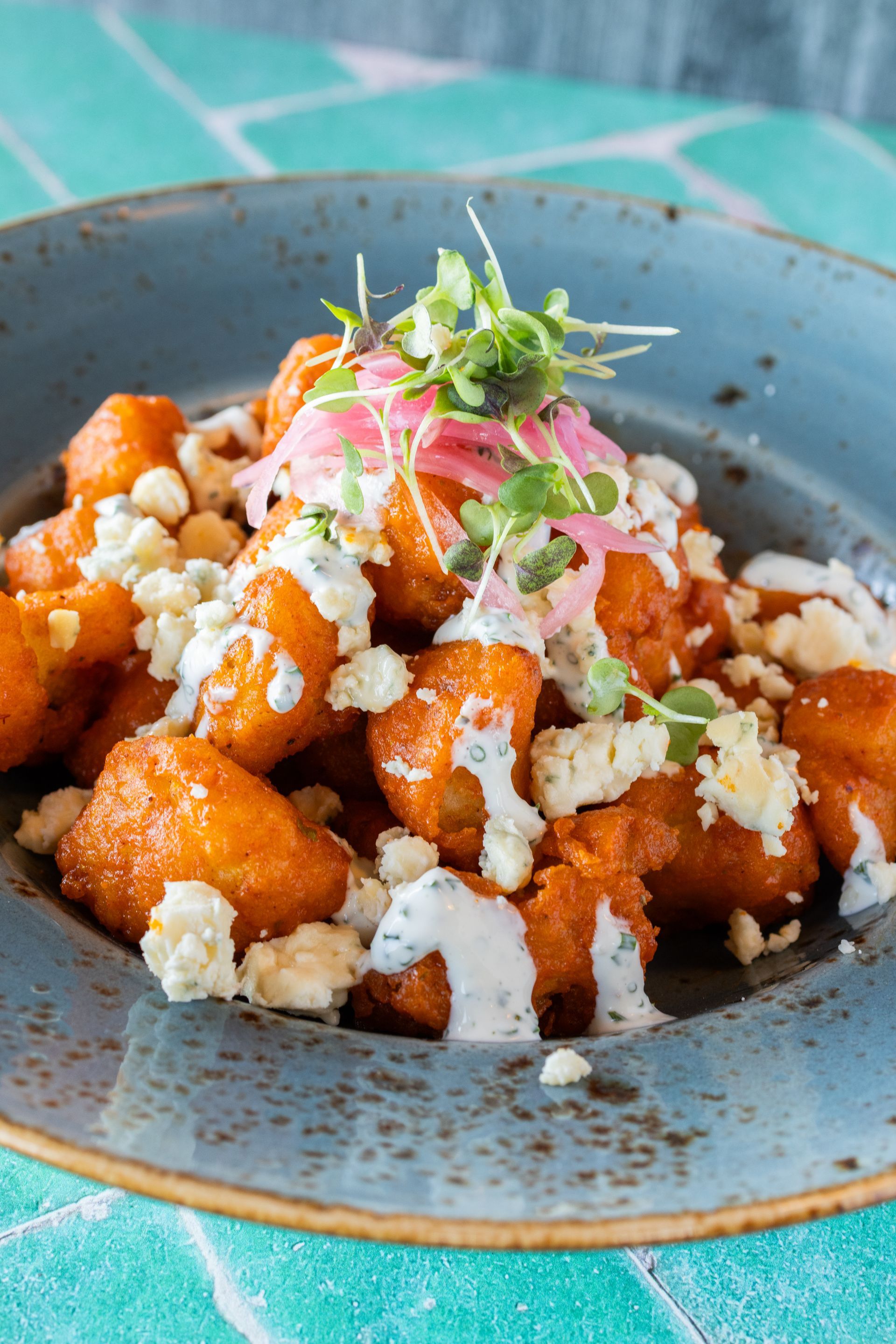 blue cheese crumbles, pickled red onion & house buttermilk ranch